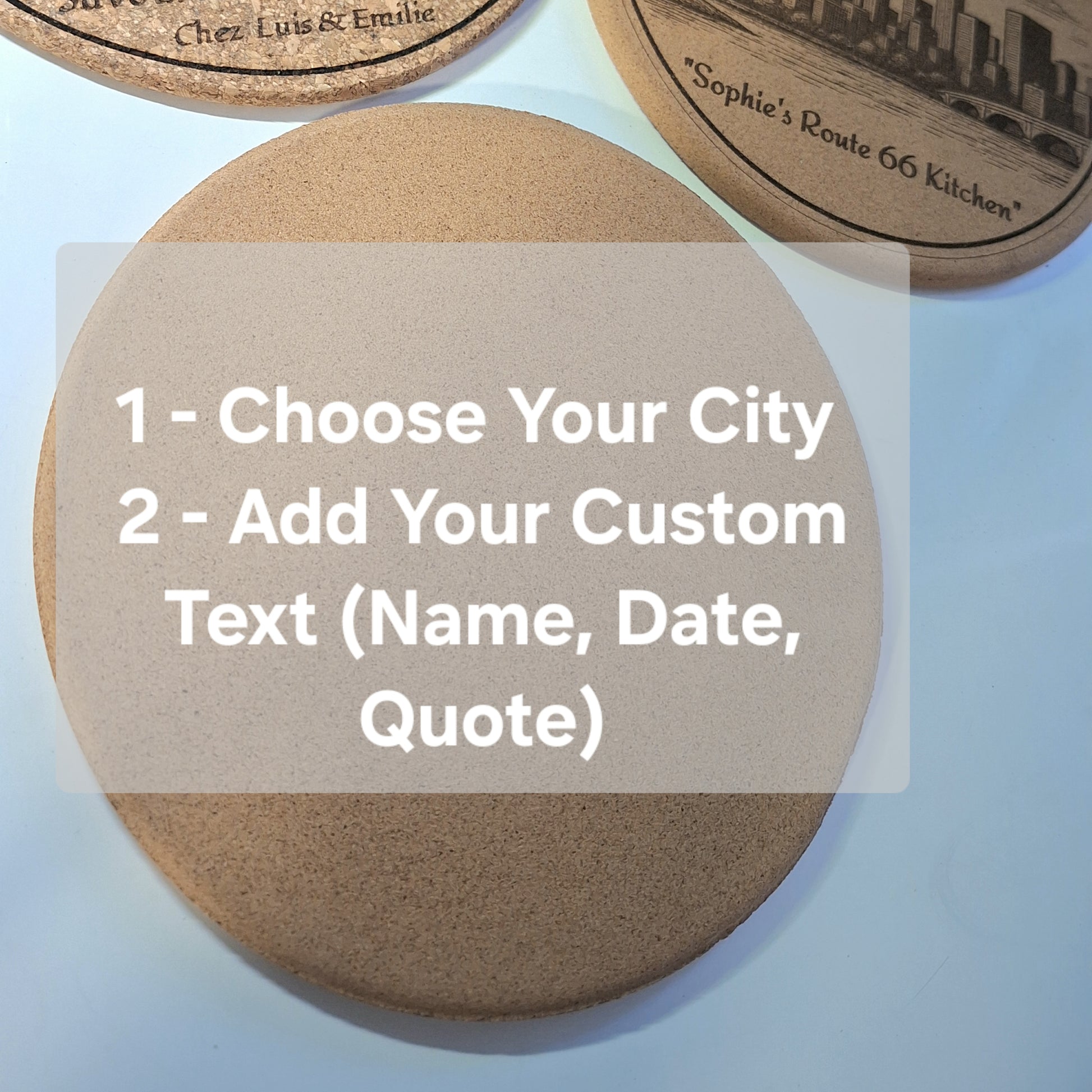 ➡️ Ajoutez un prénom, une date, un mot ou une courte phrase (max 60 caractères) pour rendre votre dessous-de-plat unique.